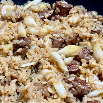 ランチにステーキ肉とネギのチャーハン、絶品でございました。